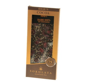 Bară hand made de ciocolată neagră 100% cu merișoare, quinoa & scorțișoară 100 gr