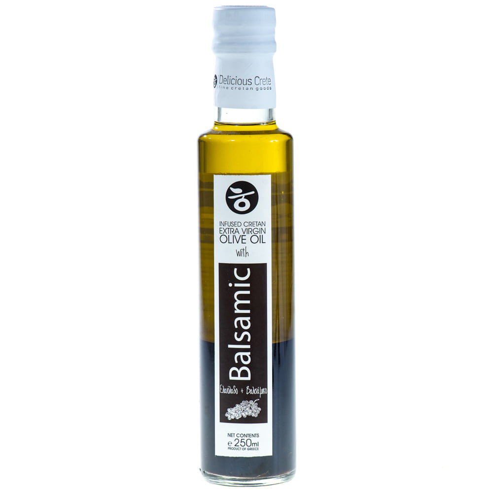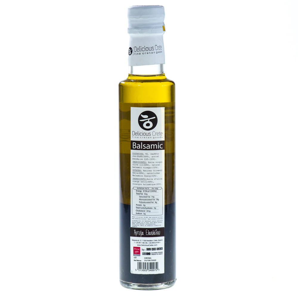 Ulei extravirgin cu oțet balsamic 250ml- ulei presat la rece, din soiul de măsline koroneiki, proveniență 100% Creta, în combinație cu oțet balsamic învechit în butoaie de stejar.